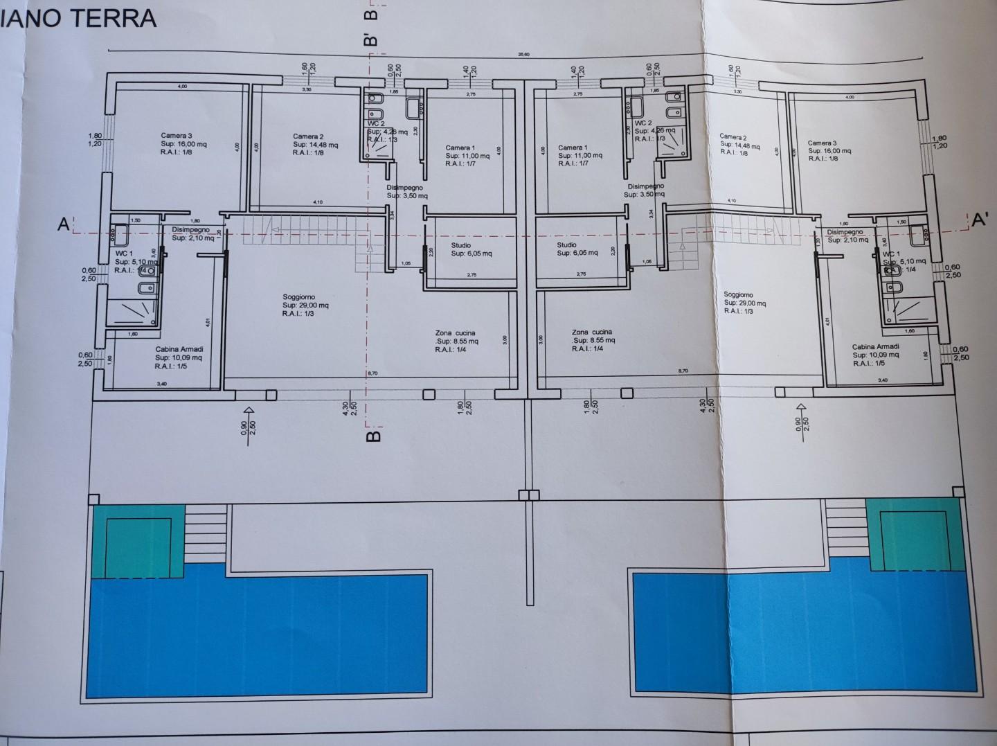 Terreno per edificare villa bifamiliare per un totale di 220 mq. con due piscine. Il lotto permette di edificare una villa bifamiliare intera divisa in due unità sviluppate su piano terra ciascuna di 110 mq ognuna con piscina privata. La villetta ...