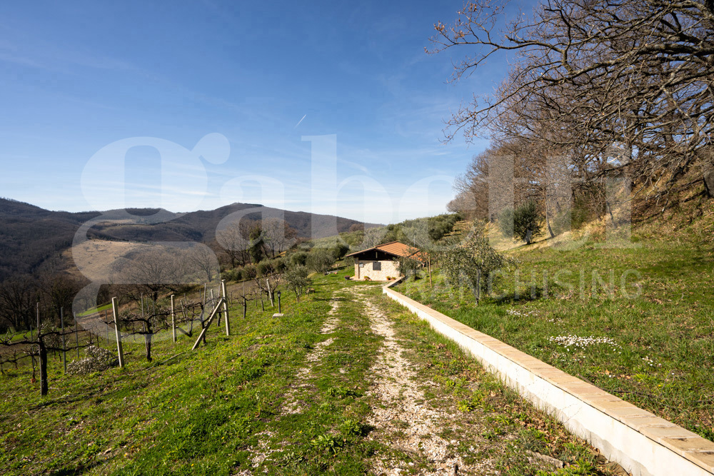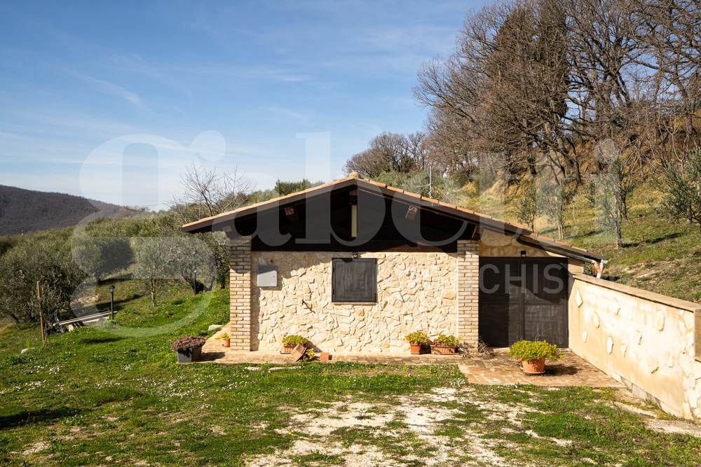 Assisi- loc. Porziano: in zona collinare e panoramica disponiamo di annesso agricolo di 40 mq in muratura rivestito in pietra di recente costruzione con terreno agricolo di 12.250 mq con 140 piante di ulivo e sei filari di vigna in produzione. L'...