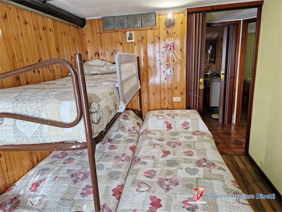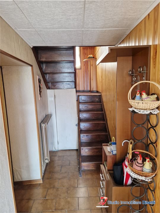Proponiamo in vendita in casetta di tre unità appartamento sito al primo piano composto da soggiorno con cucina, due camere, disimpegno, bagno e balcone.\nAl piano seminterrato locale cantina con quota 1/3 e locale garage con quota 1/3. \nNon ci s...