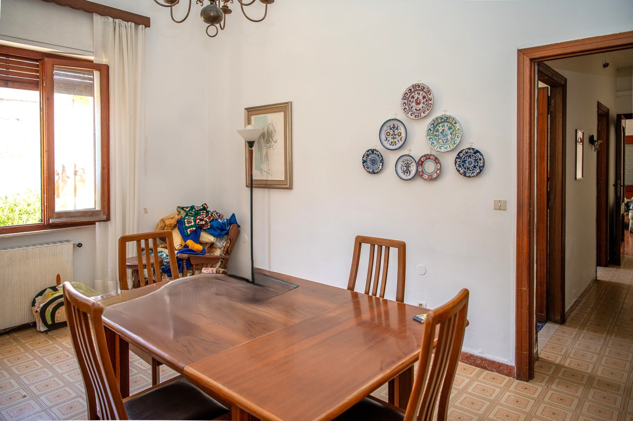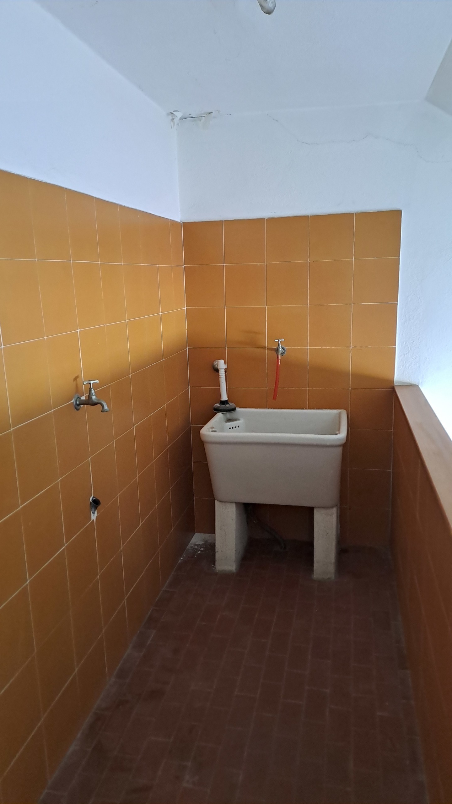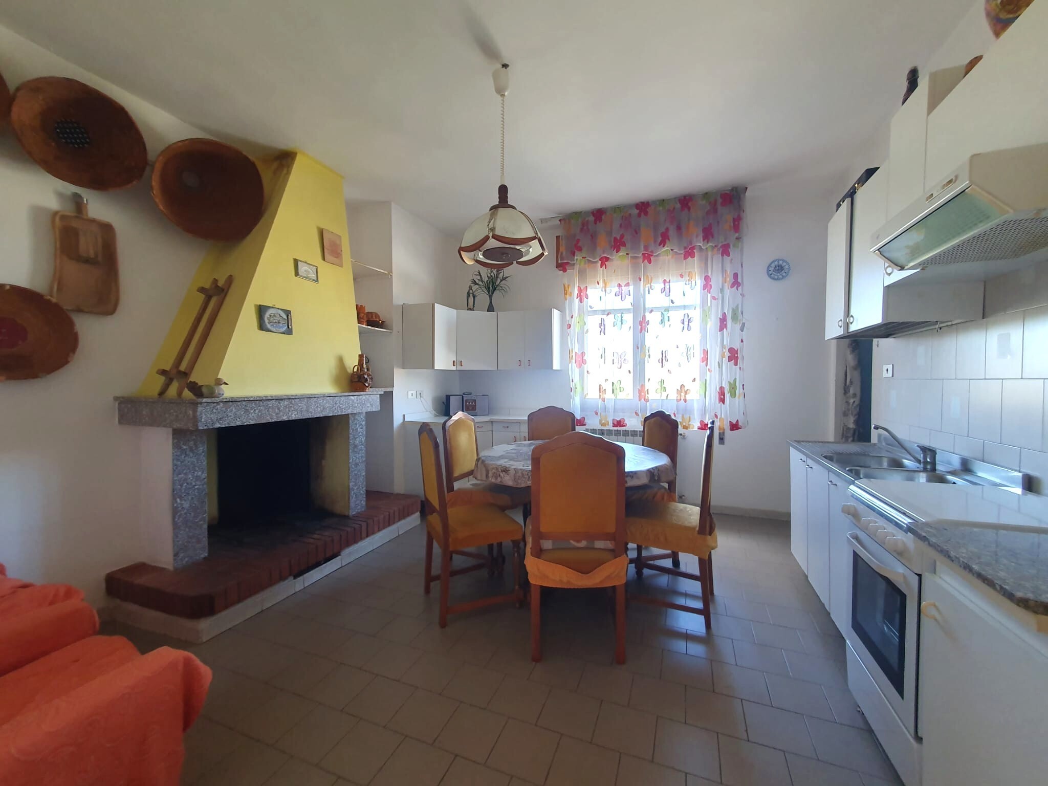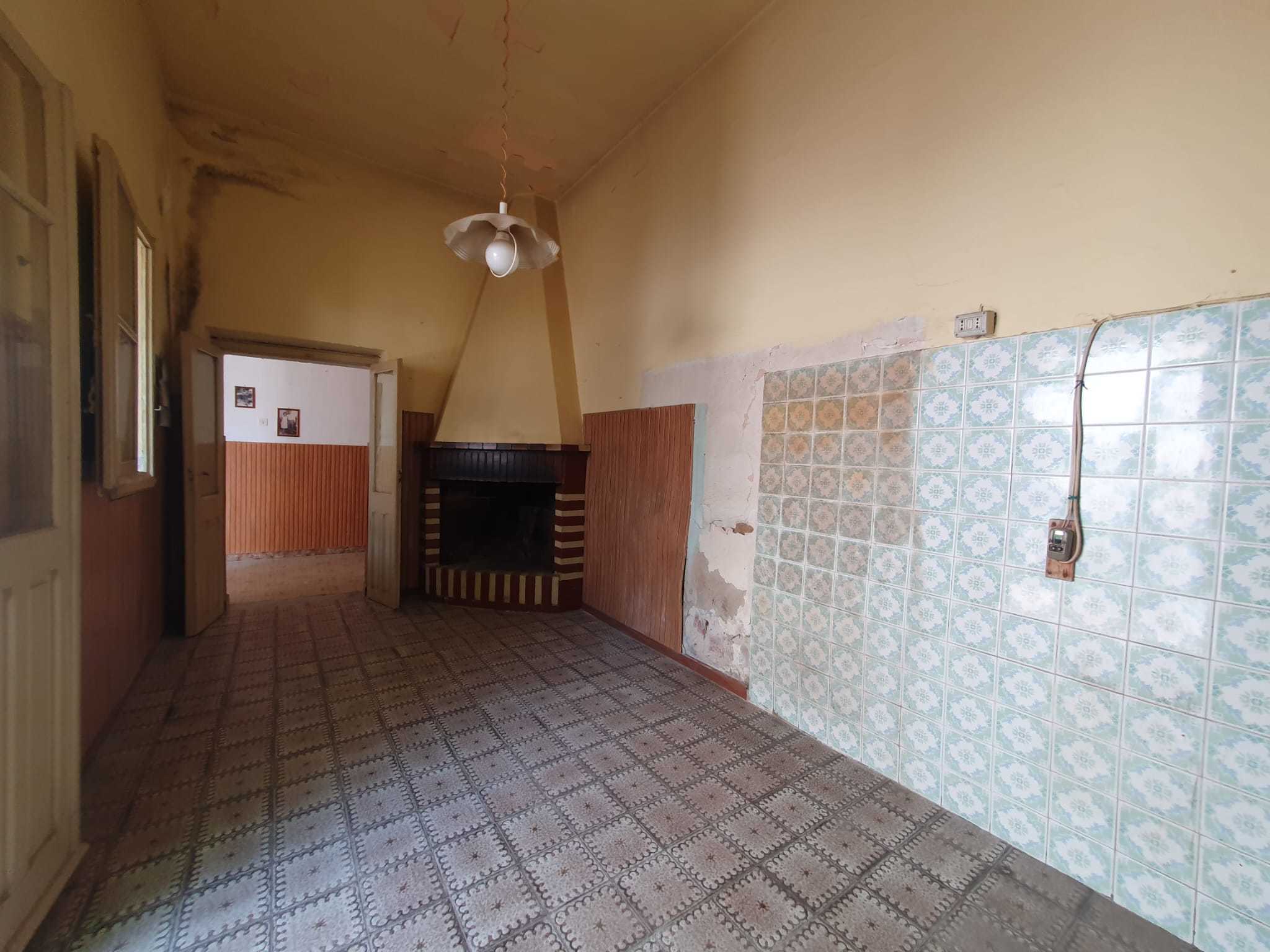 Casa campidanese trivano con loggiato, soggiorno, cucina, due camere, due bagni ripostiglio. Cortile di mq 40 carrabile. Da ristrutturare
