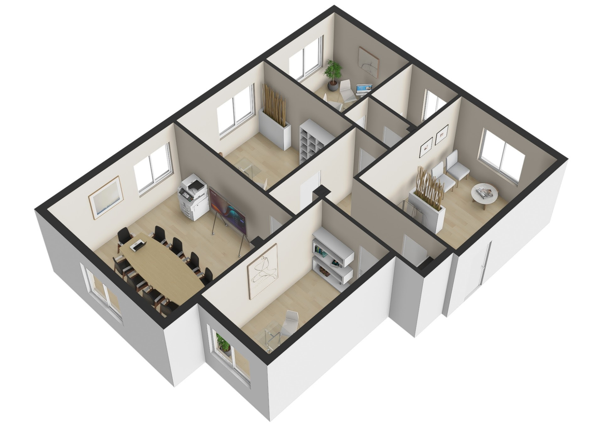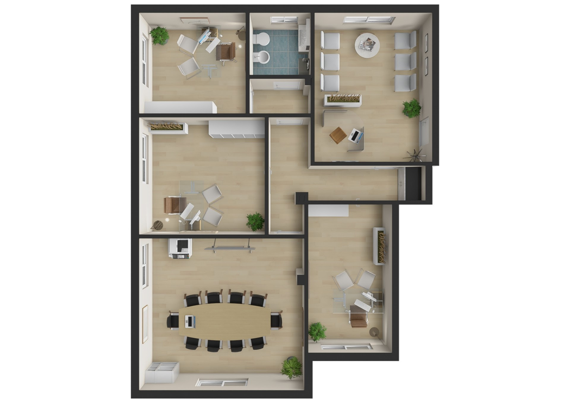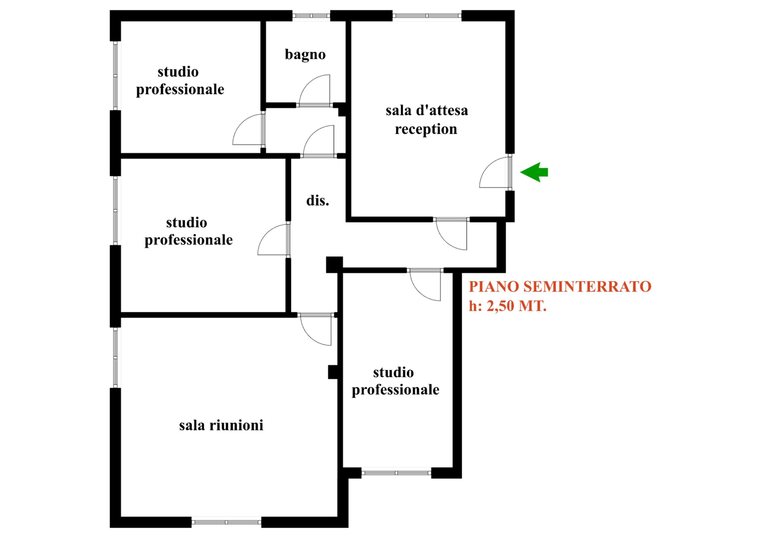 Ufficio al piano seminterrato con ascensore. Ampio pentavano composto da ingresso su ampia sala attesa, andito dove conduce a due comode stanze operative e una bella sala riunioni. Da altro disimpegno accediamo ad un'altra stanza operativa e al ba...