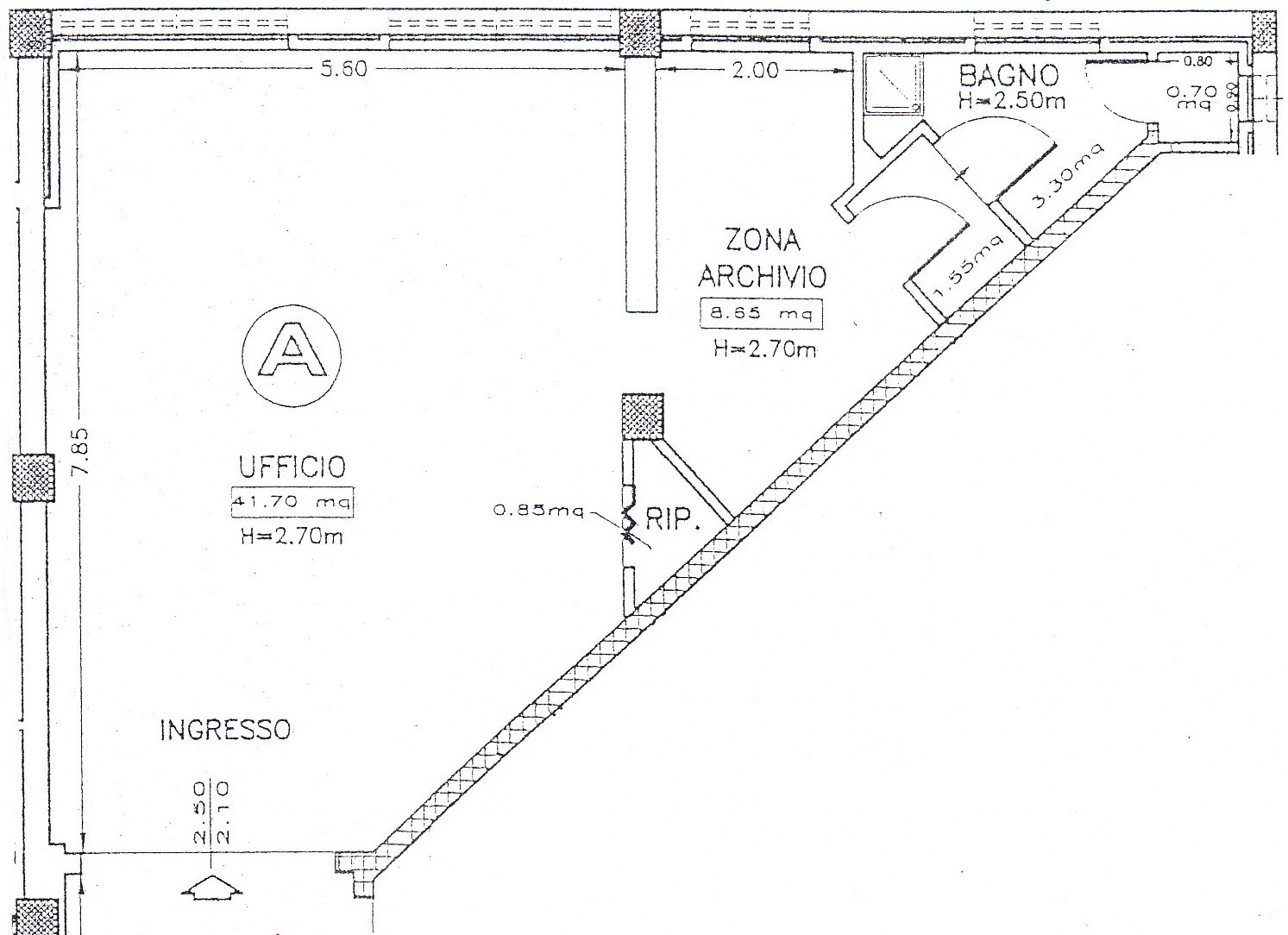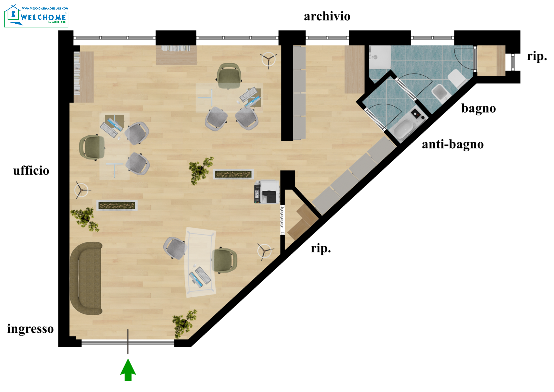 Ufficio composto da unico vano con archivio, ripostiglio, bagno e antibagno. Posto auto compreso.