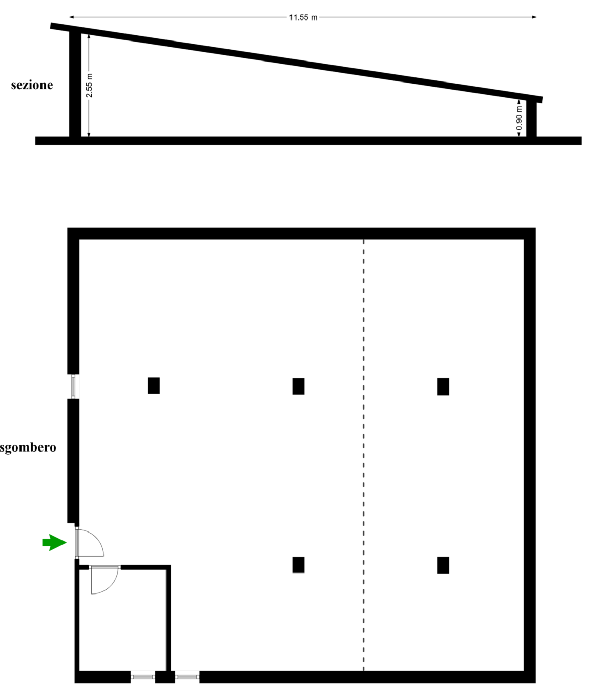 Mansarda locale sgombero ora allo stato grezzo, al piano secondo e ultimo composto da unico ambiente con due finestre e con un ripostiglio con caminetto. Altezza massima mt 2,55 e minima mt 0,90.