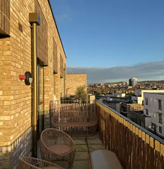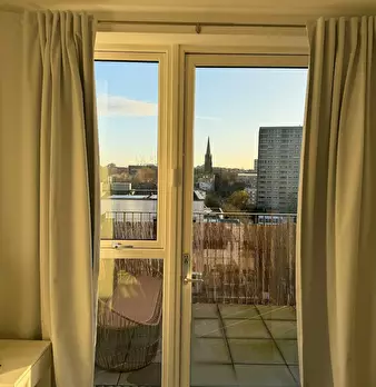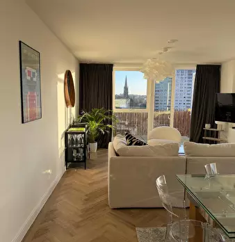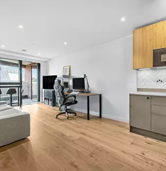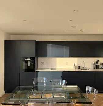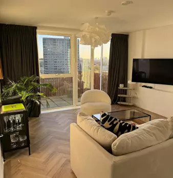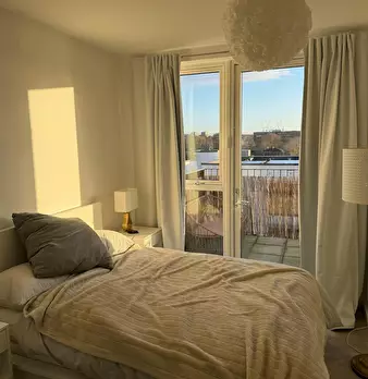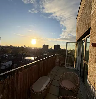 Bright canal-side 1-bed with wide south-facing balcony and canal views, fast Wi-Fi, a proper workspace and a bar table by the window between Devons Road and Langdon Park DLR. Bigger than a standard one-bed, with open-plan living room, full kitchen...