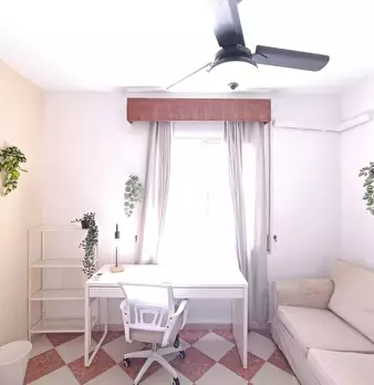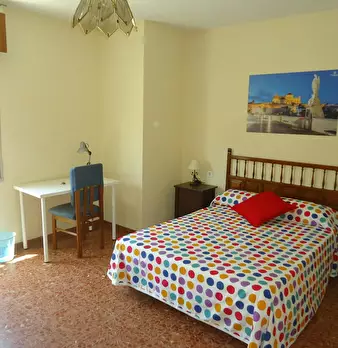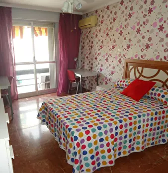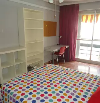 Individual exterior room with a double bed, very bright. It is fully furnished: with a 135 cm bed; bedside table; built-in wardrobe; desk with study lamp; chair and bookshelf. It also has a portable heater. Also, the price includes community and w...