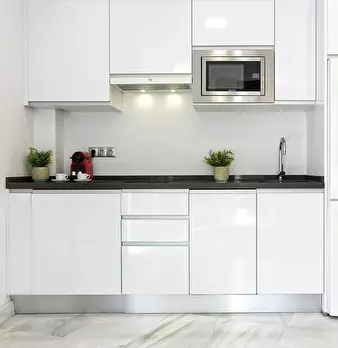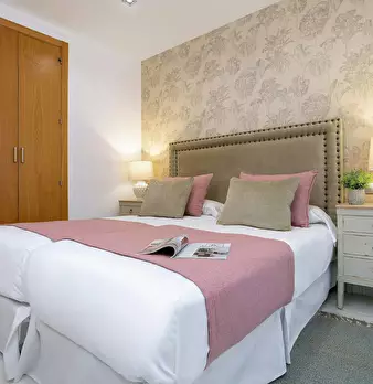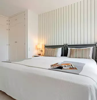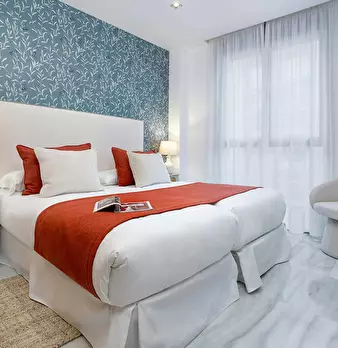 This magnificent apartment combines space and elegance in every detail. A welcoming hallway leads to the first bedroom with a single bed (105x190 cm), while opposite is a modern bathroom with shower. The second bedroom, located at the end of the h...