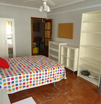 Exterior room, very bright. Fully furnished: it has a double bed of 135x190cm, a large wardrobe, shelves and chest of drawers. It has a portable heater and a balcony overlooking the street. The community fees and water are included in the price, b...