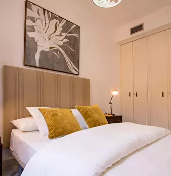 Excellent king size Room at Centro This lovely, double room in one of our best flats is waiting for you to book it! In the room, there is a comfortable, king size bed with a pillow as well as a night table and a lamp. The room has wide windows th...