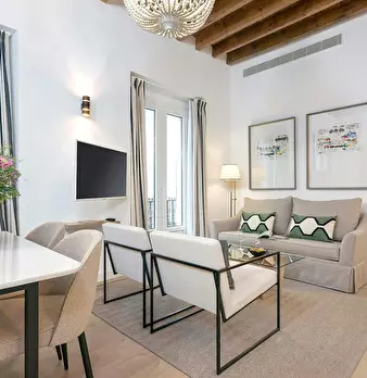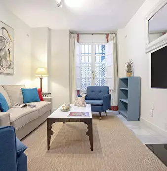 Elegant one-bedroom, one-bathroom apartment located on Corral del Rey Street, in the heart of Seville’s historic center. Upon entering, you’ll be welcomed by a spacious and stylish living room, furnished with a comfortable sofa, coffee table, Sma...