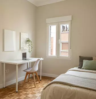 ???? Habitación de cama doble y mesita de noche ???? Escritorio con silla y flexo ???? Armario ???? TV ???? Decoraciones ???? Puerta con cerradura ???? Gastos incluidos: agua, luz y wifi Estudiar/trabajar fuera de casa es una de las mejores experi...
