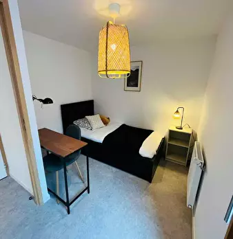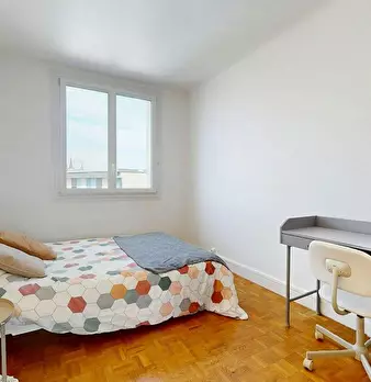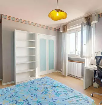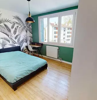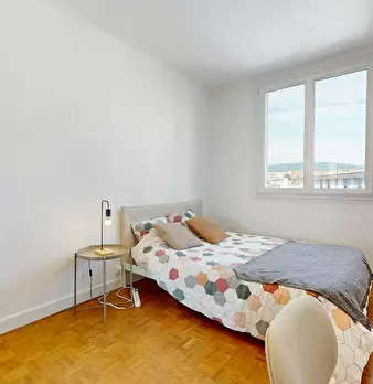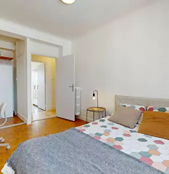 This lovely private bedroom in a fully equipped, furnished and all-inclusive flatshare in Caluire et cuire is a mix of comfort and design. It has got household furnishings, including a bed with pillows and duvet What is missing is your things to f...