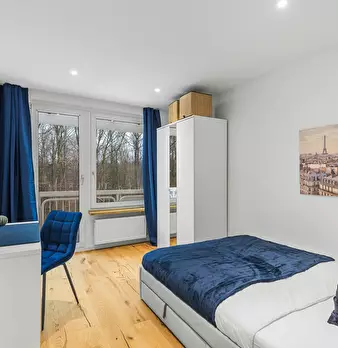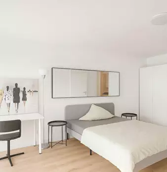 Room Description This welcoming private room on Springerstraße in Munich it offers a cozy retreat designed for both relaxation and productivity. The room comes furnished with a comfortable bed, a spacious wardrobe for your belongings, and a desk ...