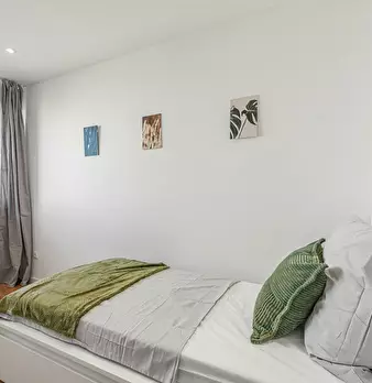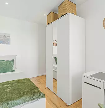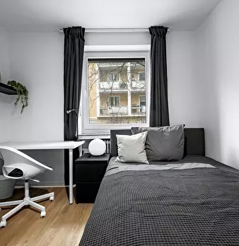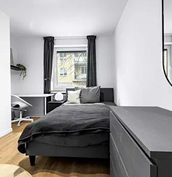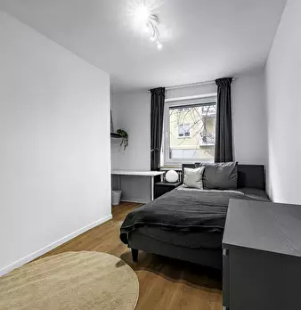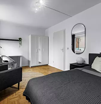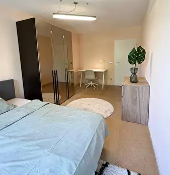 Room Description This cozy and modern private room offers a generous common area. The room is elegantly furnished with a comfortable bed, a large wardrobe, and a desk, providing ample space for both relaxation and productivity. Our shared apartmen...