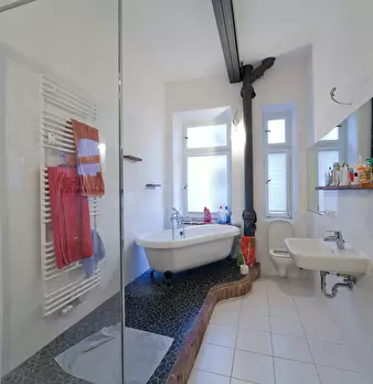 APARTMENT Live just a few steps away from Isar river, where you can have a little barbecue or just relax. Take your time! In the streets nearby you will find many restaurants, bars, cafes and shops. The apartment in a totally restored 19th century...
