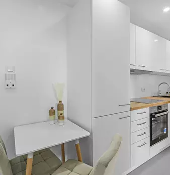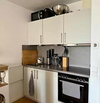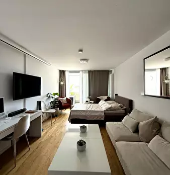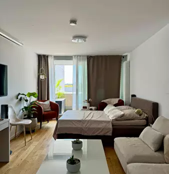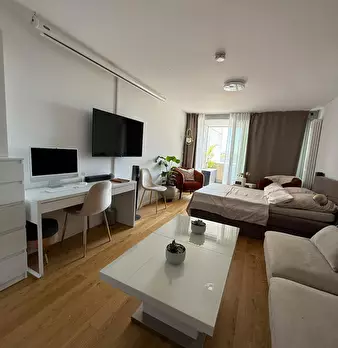Bright and fully furnished apartment available in Munich from November 15 until February 15. The apartment offers: • Cozy living and sleeping area with sofa, bed, and extendable dining table • Fully equipped kitchen (stove, fridge, cookware, et...