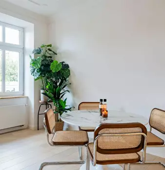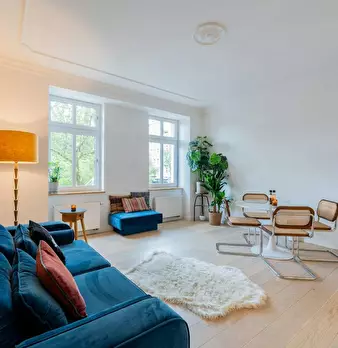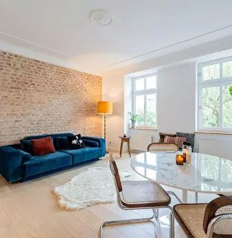 Entire apartment Tastefully renovated 3-room flat in a quiet central location: parquet flooring, fitted kitchen, new bathrooms The corner building, built around 1900, overlooks the green area in front of the Nordbahnhof railway station. The former...