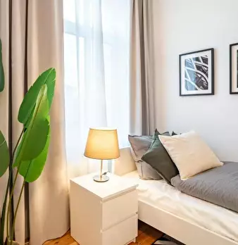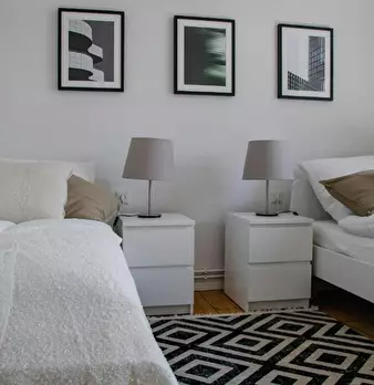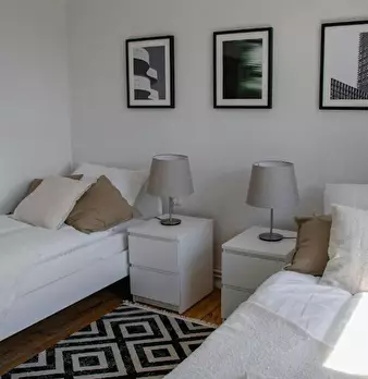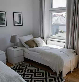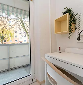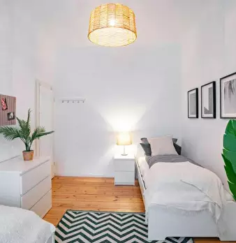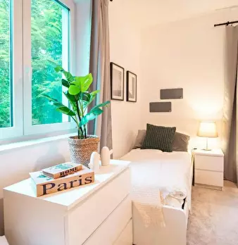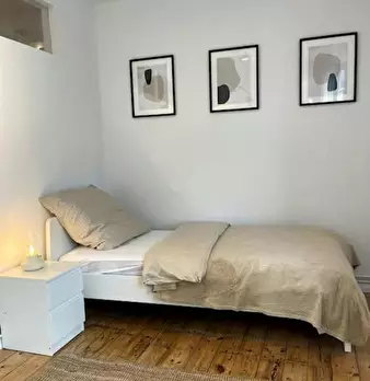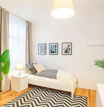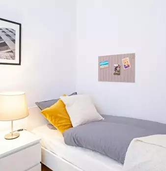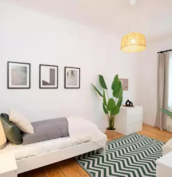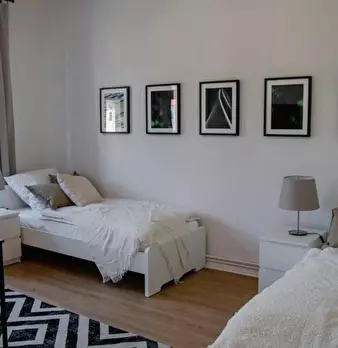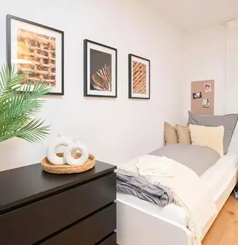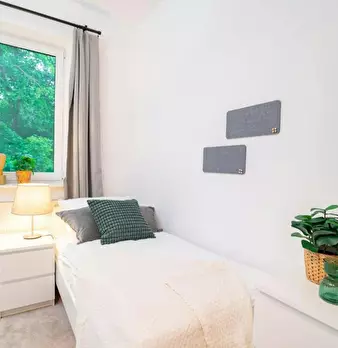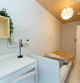 Room 2 Hi Guys, this is a fully furnished room in a shared flat. The room has a comfortable bed, a desk with chair and a wardrobe for your clothes. Also the common areas are fully equipped with washing machine, cooking equipment and all you nee...