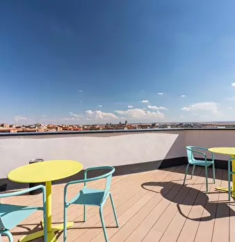 DELUXE TERRACE ROOM Residencia Universitaria en Segovia con (hidden) La Residencia se encuentra en Calle Blanca de Silos No8, en pleno corazón estudiantil de la ciudad y a tan solo 30 segundos andando del Campus María Zambrano. Podrás ir a clase...