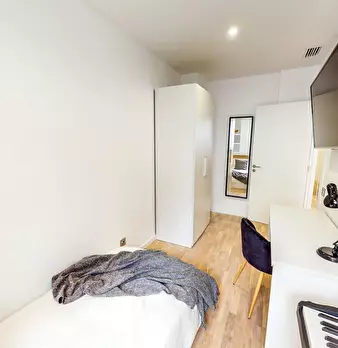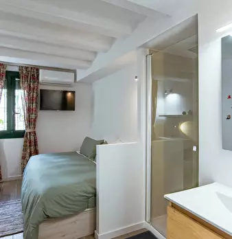 ???????????? Be aware that this listing represents a category of apartments with similar characteristics. The actual place might be slightly different to the pictures. ???????????? Single studio (16m2) featuring elevated bed (105cm x 200cm) abo...