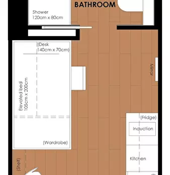 ???????????? Be aware that this listing represents a category of apartments with similar characteristics. The actual place might be slightly different to the pictures. ???????????? Single studio (16m2) featuring elevated bed (105cm x 200cm) abo...