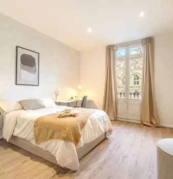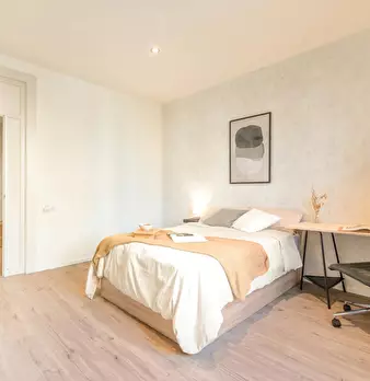 ???????????? Welcome to this stunning 4-bedroom apartment on the vibrant Avinguda del Paral·lel, one of Barcelona’s most dynamic areas! Each spacious bedroom is fully furnished with a comfy bed, a desk and chair for your workspace needs, a ward...