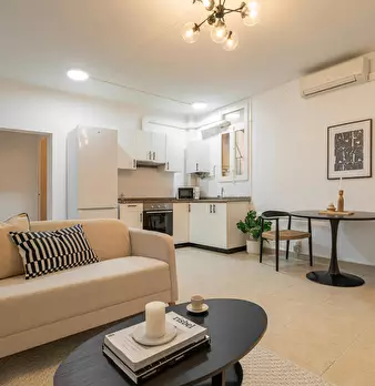 This Flat is a spacious, recently renovated with two bedrooms and one bathrooms. The living room features a sofa and a dining area, ensuring comfort for all guests. Facilities: Guests enjoy a terrace and free WiFi, perfect for relaxation and stay...
