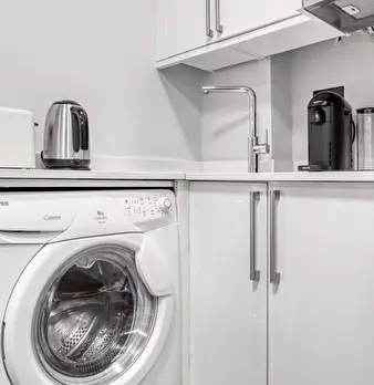 Appartamento ammobiliato con 1 camera da letto in affitto a Cornforth Ln. L'immobile si trova al 1° piano di un edificio dotato di ascensore. Completano la proprietà asciugatrice, lavastoviglie, tv e divano letto.