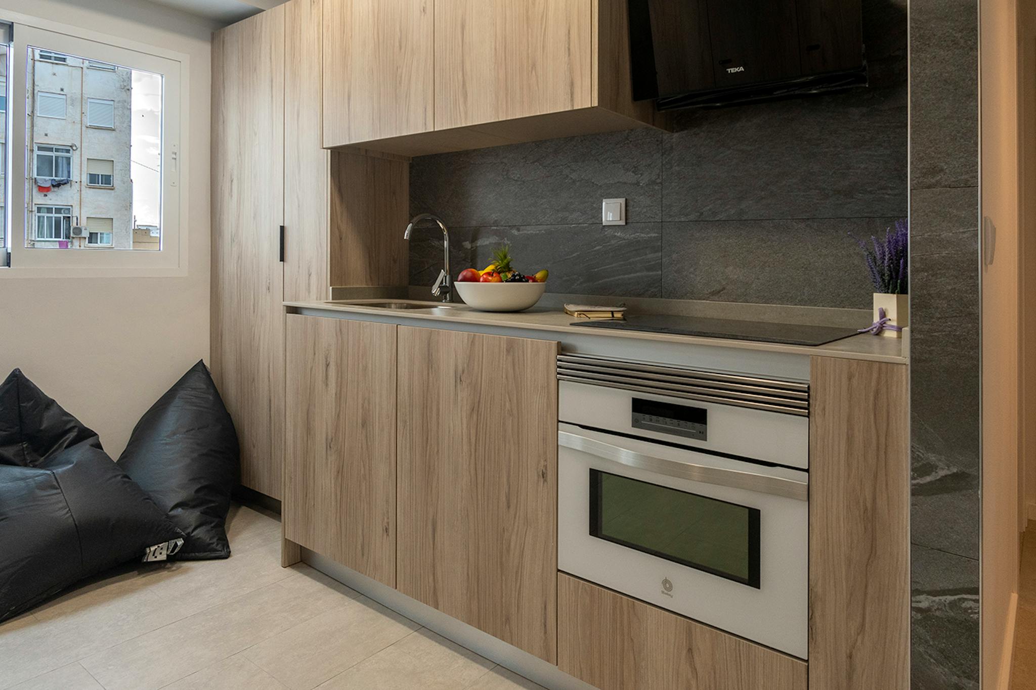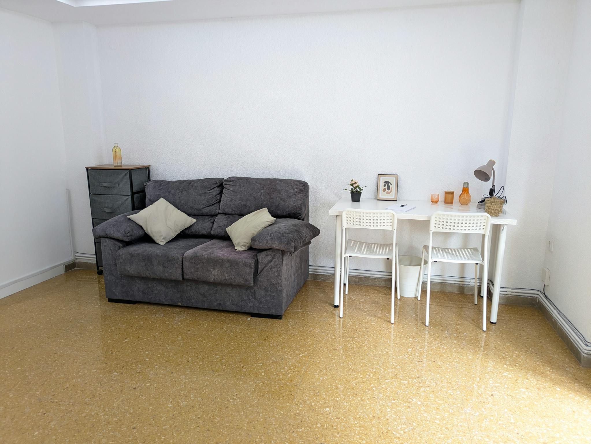 Private lounge within the room NEW, RECENTLY RENOVATED Spacious room with two single beds, desk, wardrobe, and private lounge. Shared bathroom and fully equipped kitchen with appliances, sink, washing machine, and small dining area. Quiet area, ve...