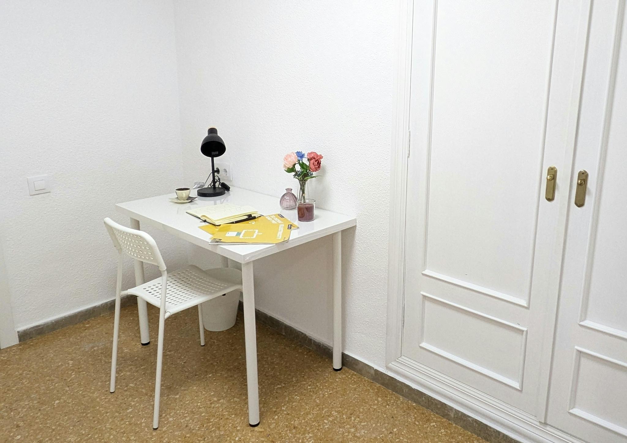 Excellent private room in a shared apartment in the center of Valencia in the Barrio del Carmen. Characteristics: 14m2 room with private bathroom in a shared flat, it has a large window which makes it very bright, it is fully equipped so that you ...