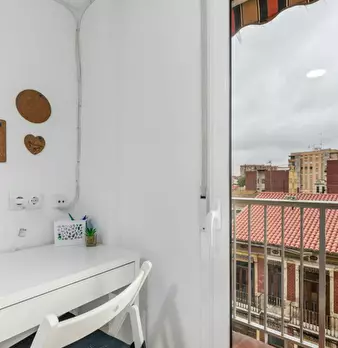 CAMA DOBLE CON ESCRITORIO Y BALCÓN Valle-5 es una de nuestras habitaciones individuales situadas en el barrio de Campanar, en la Calle Valle de la Ballestera. Cama de 135 x 190 cm con sábana bajera y almohadas. Armario. Llave en la puerta de la ha...
