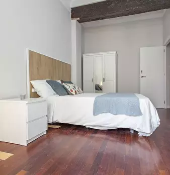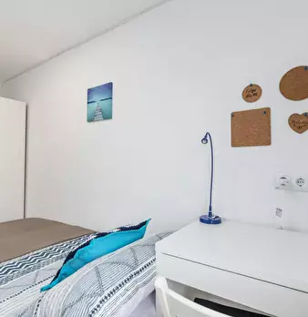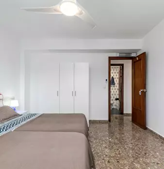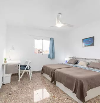 CAMA INDIVIDUAL CON ESCRITORIO Y ARMARIO Planells-5 es una de nuestras habitaciones individuales situadas en el barrio de El Cabañal. Cama de 90 x 190 cm (inluye sábanas). Armario de dos puertas correderas con gran cantidad de almacenaje. Llave en...