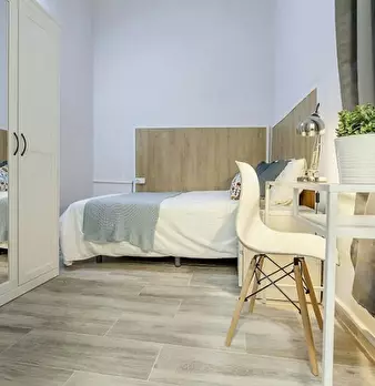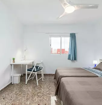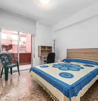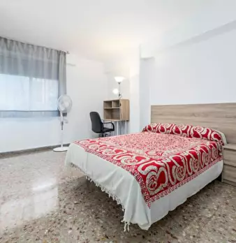 CAMA DOBLE CON ESCRITORIO Y BALCÓN Cid-2 es una de nuestras habitaciones dobles situadas en el barrio residencial de Olivereta. Cama de 135 x 190 cm con sábana bajera, nórdico y almohadas. Armario para tu ropa. Llave en la puerta de la habitación ...