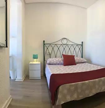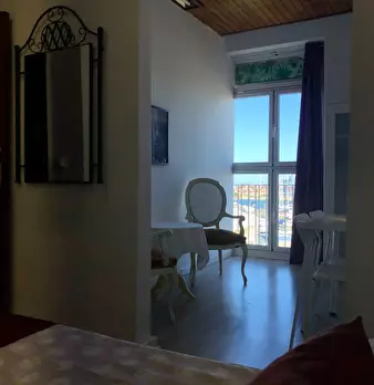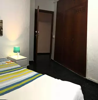 Interior bedroom with double bed on the seventh and last floor, very bright and quiet. In front of the beach and with a metro stop on the same street as the building. Metro / tram stop lines 1, 2, 5, 6 and 8 (direct connection with Valencia airpor...