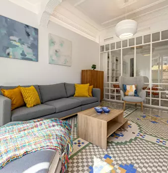 Splendid seasonal flat in the Gran Via neighbourhood, the most exclusive area of Valencia, next to the centre and a stone's throw from the Turia river. It is situated just 1.1 km from the Plaza del Ayuntamiento, and a 12 minute walk from the live...