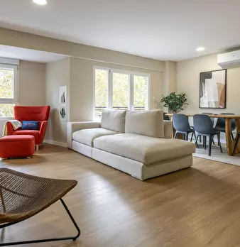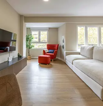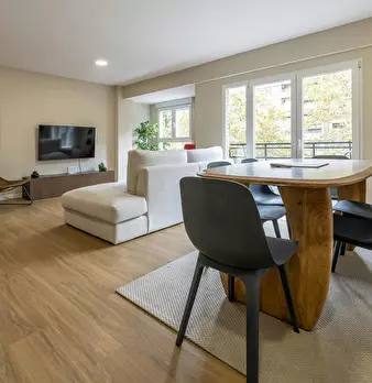 This bright seasonal flat is in a privileged location in València, just 150 metres from Av. Francia and 300 metres from Av. del Puerto, two of the city's main thoroughfares. A parking space in a separate building is included at no extra cost. It...