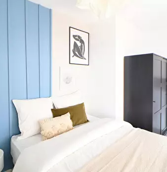 Nous vous accueillons dans la ville limitrophe de Strasbourg : Schiltigheim ! C’est dans un appartement de 73 m2, loué tout équipé et meublé, que nous vous proposons cette chambre de 12 m2. Avec sa décoration sophistiquée dans les teintes de bleu,...