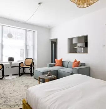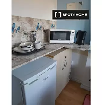 Questo monolocale completamente arredato offre un confortevole spazio abitativo dotato di riscaldamento centralizzato e aria condizionata individuale. È dotato di lavatrice privata, TV e cucina attrezzata. Le utenze di elettricità, acqua, gas e Wi...