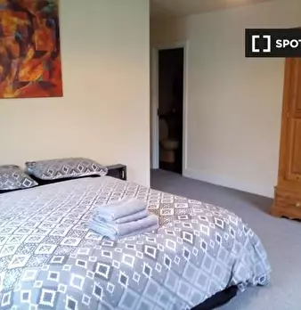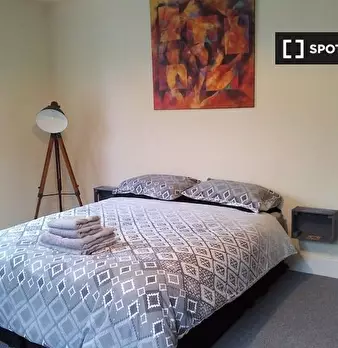 Una camera da letto completamente arredata in un appartamento con 4 camere da letto in affitto a Gibbs Green Cl. La proprietà comprende una cucina completamente attrezzata, un forno e molto altro. Si trova vicino a negozi e ristoranti raggiungibil...