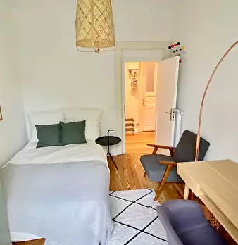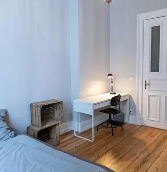 Hello, we would love to welcome you to our Co-Living Location in Eppendorf. Becoming a tenant with us comes with many perks, great and small. Double-bed, wardrobe, desk and chair, art and an armchair, all in your room. You get weekly flat cleanin...