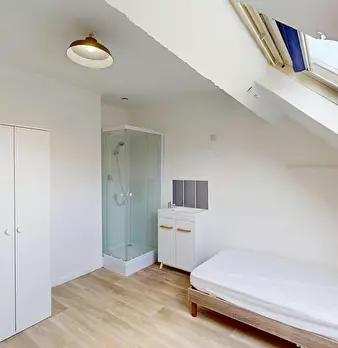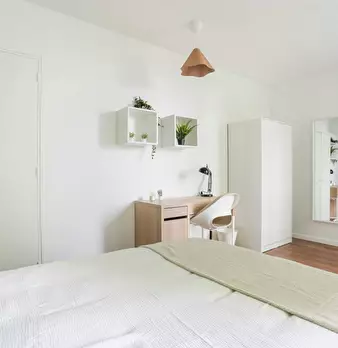 Bienvenue à Lille ! C’est dans cet appartement en coliving de 94 m2 que se situe cette chambre de 9 m2. Au 8e étage d’un immeuble sécurisé, elle est louée entièrement meublée. Elle comprend un lit, un bureau, des rangements et une salle d’eau priv...