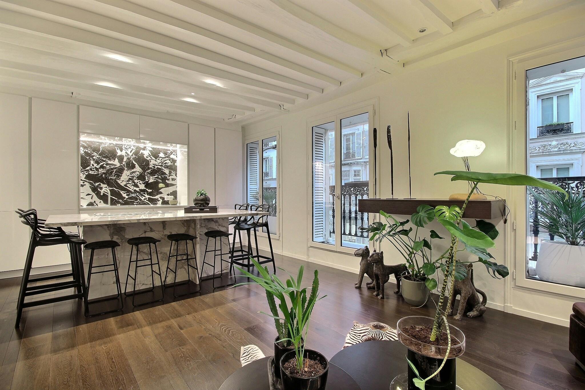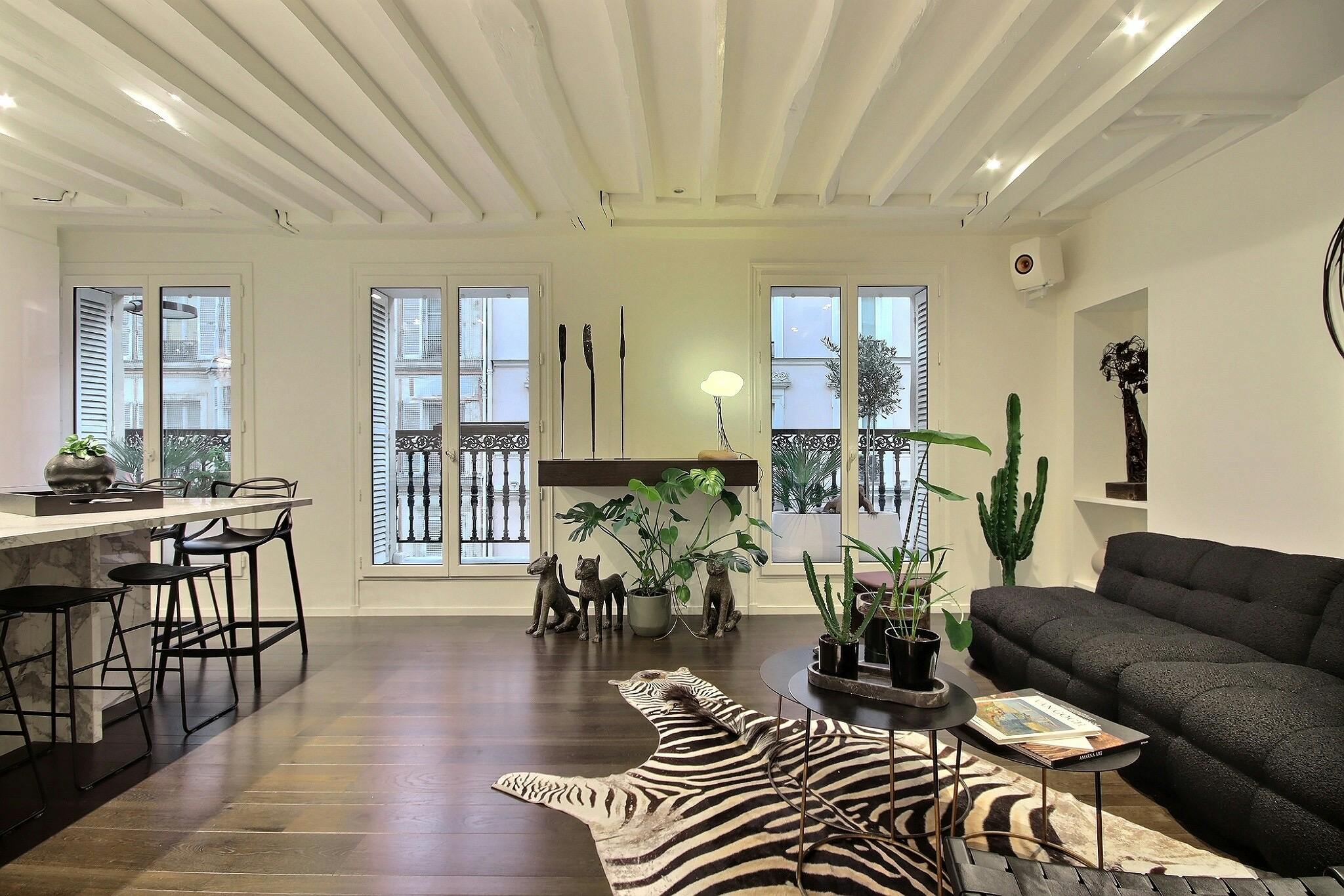 Furnished Apartment rental 2 bedrooms - 47m2 - Buttes-Chaumont - Paris Stay in this 47m2 apartment, located in the Buttes-Chaumont shopping district, in the heart of the 19th arrondissement in Paris. This modern, spacious 2-bedroom apartment can a...