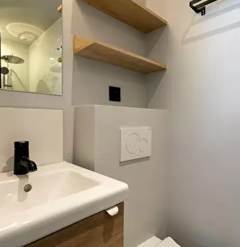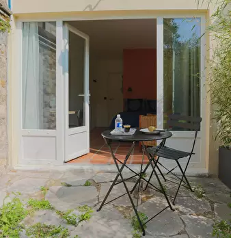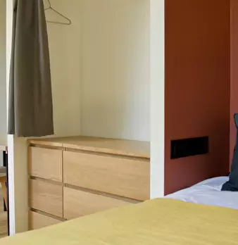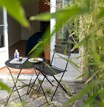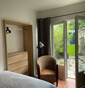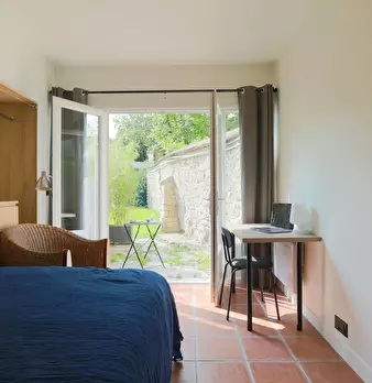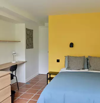 Chambre #14, surface 14m2 avec salle de bain individuelle et terrasse privative de 10m2 - Rez-de-jardin - Lit 140X190, chevet, bureau, chaise, fauteuil, lampes, espace dressing, linge de lit et de toilette fournis. Super coliving dans belle maiso...