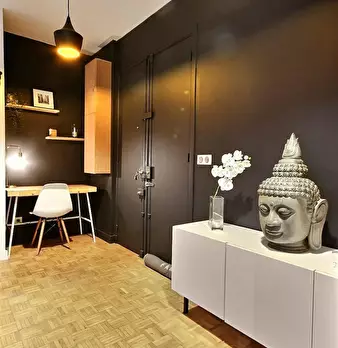 Chambre #8 - Maison principale 1er étage sur jardin - 15 m2, lit 140X190, bureau, chaise, fauteuil, espace dressing, salle de bain (douche, lavabo, WC). Super coliving dans grande maison meublée avec jardin à 12 mn du métro Lucie Aubrac, ligne 4...