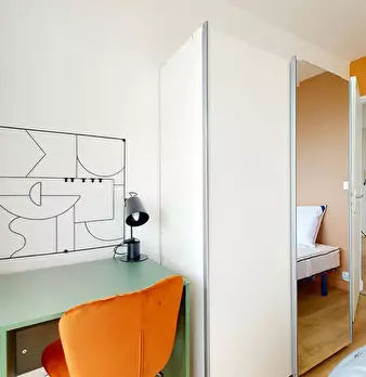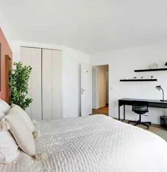 Bienvenue à Courbevoie ! C'est dans un duplex de 144 m2 en coliving, au 7e étage d'une résidence sécurisée, que se situe cette chambre de 18 m2. Louée meublée, elle comprend un lit double (140x200), un bureau, un coin lecture et des rangements int...