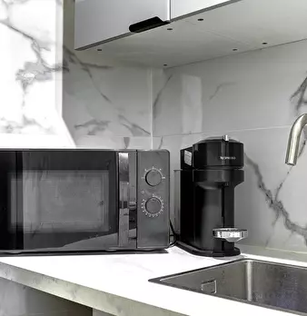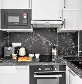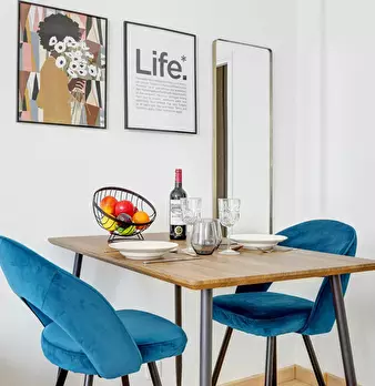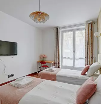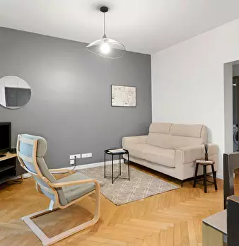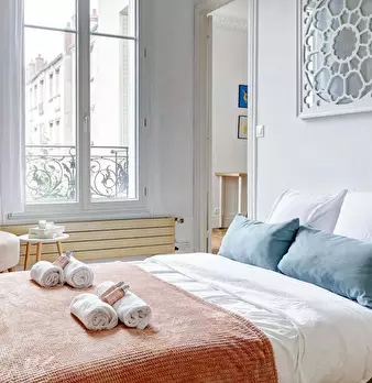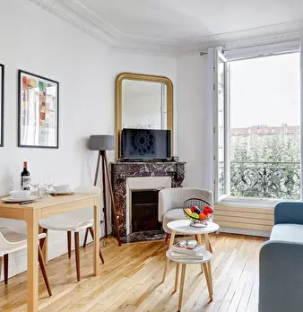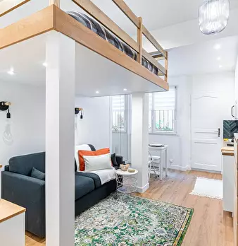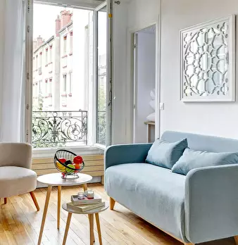 La Suite Théâtre est un élégant pied-à-terre parisien de 33 m2, idéal pour 4 personnes, situé au rez-de-chaussée d’un immeuble calme. Cet espace bien pensé comprend un salon confortable avec canapé convertible et TV, une cuisine ouverte entièremen...