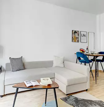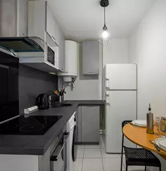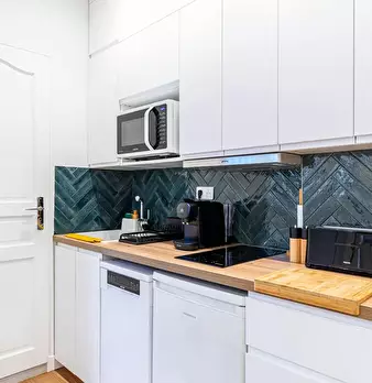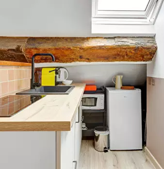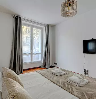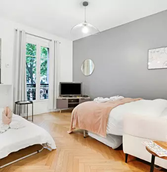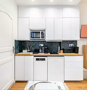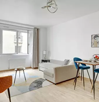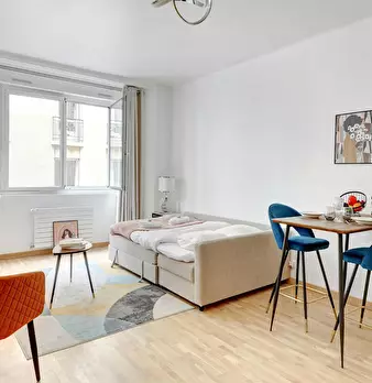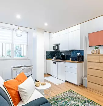 Bienvenue dans votre pied-à-terre parisien ! Dès l’entrée, vous découvrirez un charmant appartement de 22 m2, lumineux et élégamment décoré. Le salon vous invite à la détente avec son canapé confortable et sa télévision. L’espace repas, idéal po...