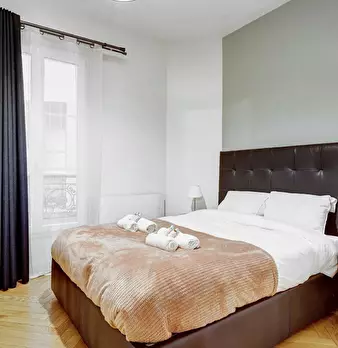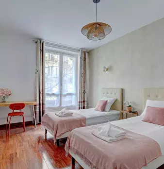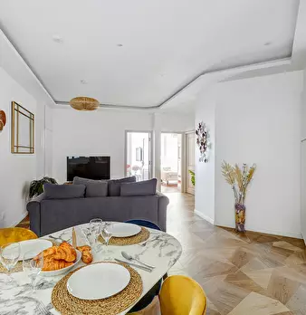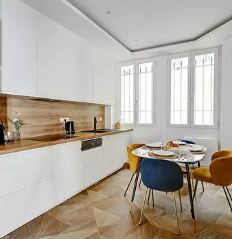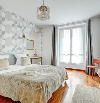 Au cœur du 3ème arrondissement, dans l'un des quartiers les plus élégants de Paris, cette suite haussmannienne rénovée allie charme classique et confort moderne. Lumineuse et spacieuse, elle peut accueillir jusqu'à 6 personnes, parfaite pour un sé...