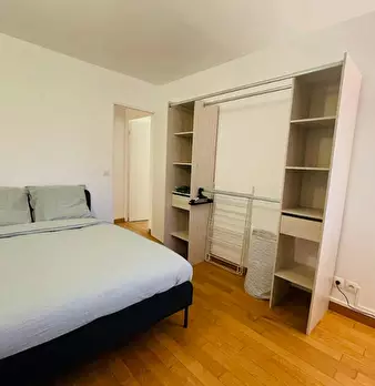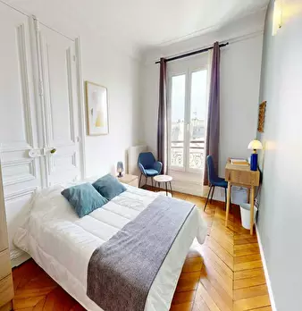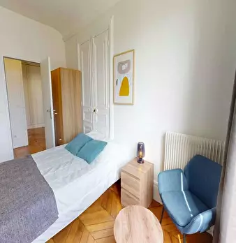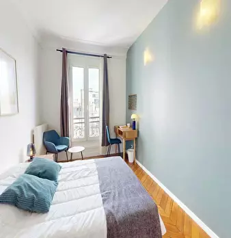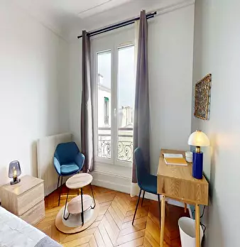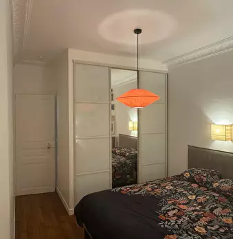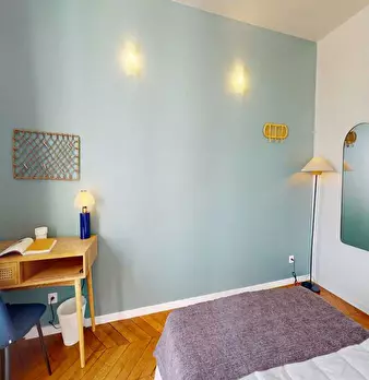 This lovely private bedroom in a fully equipped, furnished and all-inclusive flatshare in Paris is a mix of comfort and design. It has got household furnishings, including a bed with pillows and duvet What is missing is your things to feel at home...