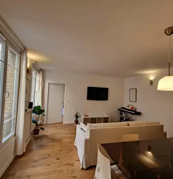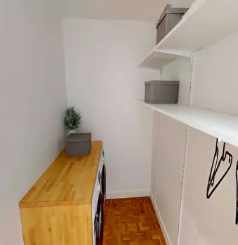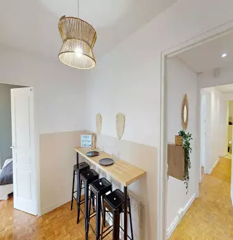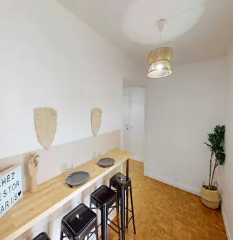 This lovely private bedroom in a fully equipped, furnished and all-inclusive flatshare in Paris is a mix of comfort and design. It has got household furnishings, including a bed with pillows and duvet What is missing is your things to feel at home...