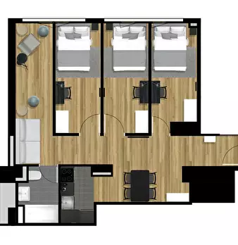 ROOM Our rooms are fully furnished with everything you need. In the bedroom area, you will find a bed with a comfortable mattress, as well as a bedside table, small lamp, and wardrobe. The bedroom is also equipped with a desk and chair, so you can...